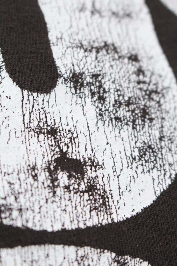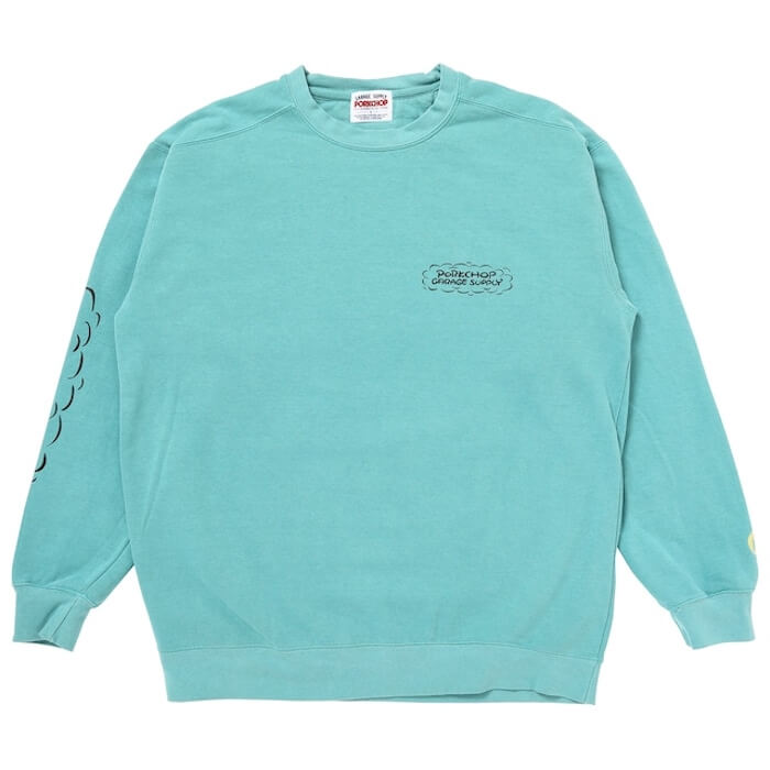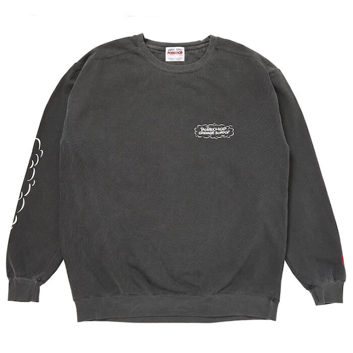 左胸・バック・右袖にプリントを配し、ピグメント加工を施したスウェットになります。