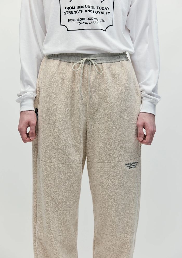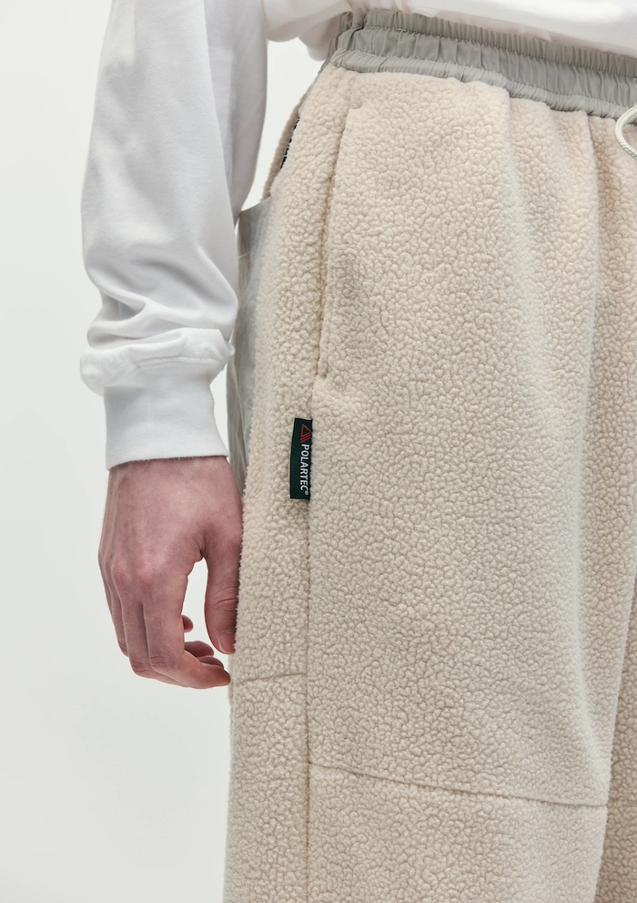 POLARTEC社THERMAL PRO®の保温性に優れる軽量ボア素材(リサイクルポリエステル100%)を使用したイージーパンツ。