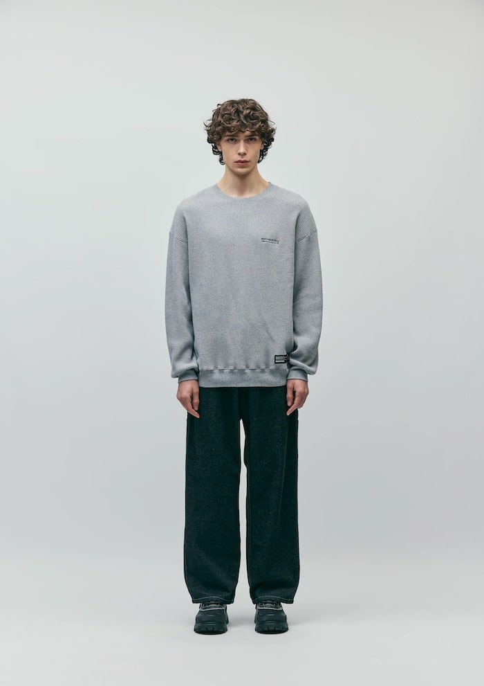 肉厚な度詰めのワッフル素材を使用したクルーネックプルオーバー。