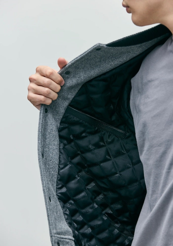 ハリコシのある肉厚なヘヴィメルトン素材とカウレザーをコンビネーションで使用したスタジアムジャケット。
