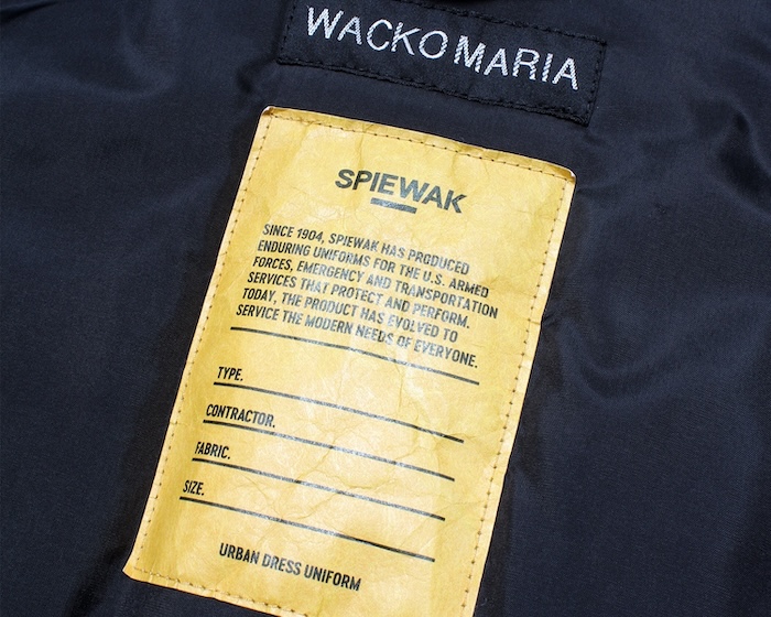 フロントの折りたたみ式フラップ付きポケットや背面肩口のアクションプリーツなどディティールをしっかりと継承し、WACKO MARIAオリジナルシルエットで仕上げ、中綿入りの防寒性の高い一着となります。