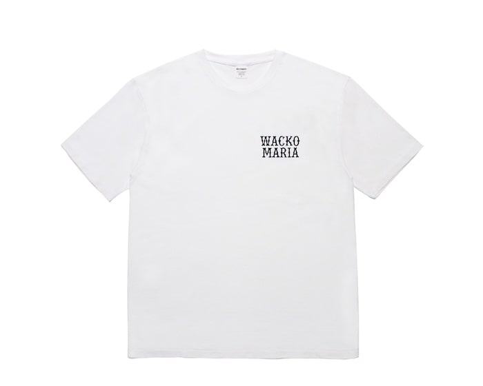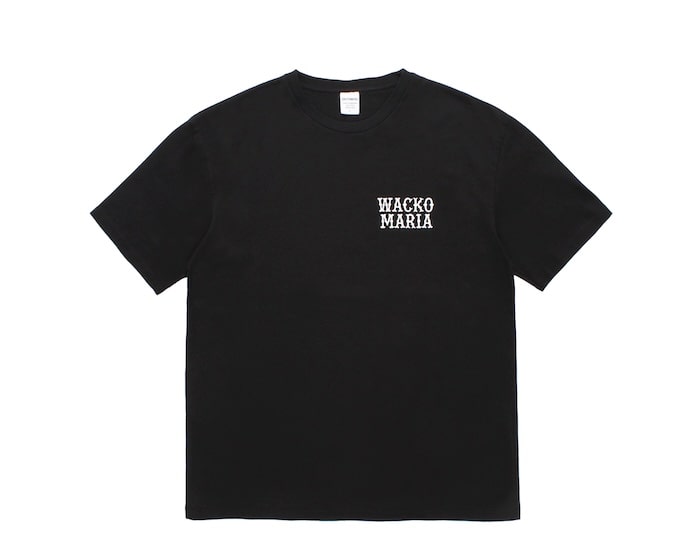 左胸、バックに「WACKO MARIA」プリントを配した、製品洗い加工を施したヘビーウエイトショートスリーブTシャツです。
