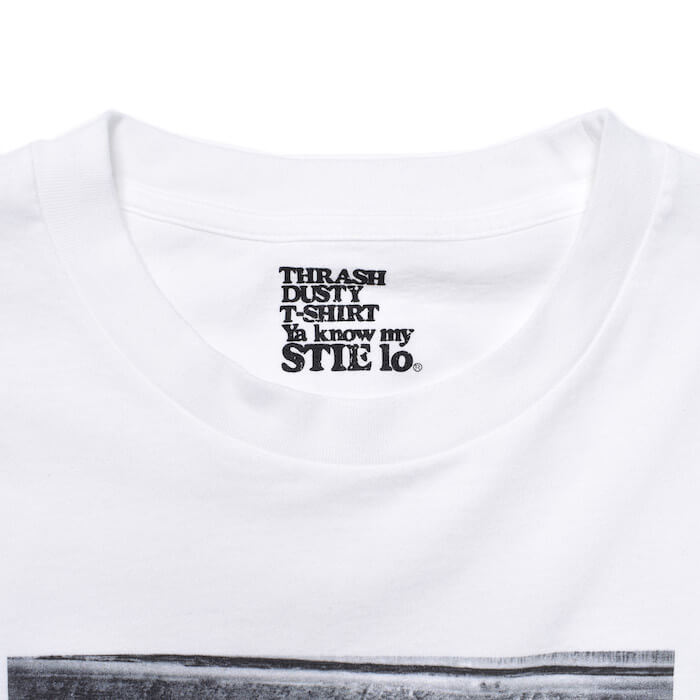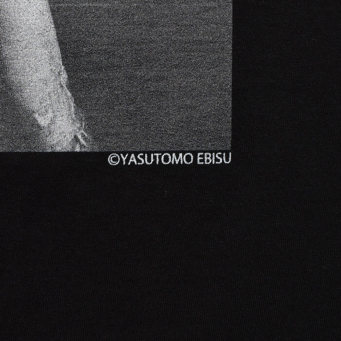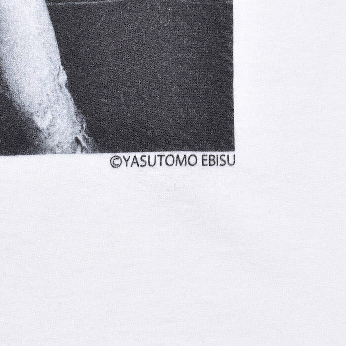 真正面からのポージングを撮影したフォトをプリントしたクルーネックTシャツ。