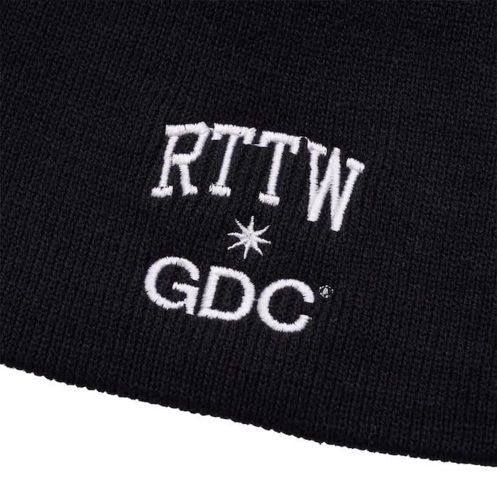 本コラボのために描き下ろされた「RTTW GDC」ロゴ刺繍を配したビーニーとなります。