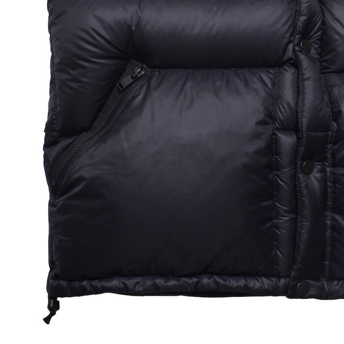 ナイロンリップストップを使用したダウンベスト、クラシックデザインをモダンな素材感とシルエットでアップデート。